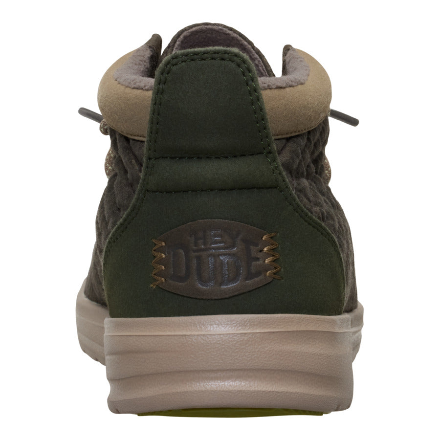 Quilted on the outside with a cozy microfleece lining. these Wally Mid shoes swaddle your feet in softness and warmth without losing their famous HEYDUDE?cool. The easy-on system and elastic laces mean you don’t have to tie keep the fit snug and hassle-free. The lightweight. flexible sole makes every step a delight.